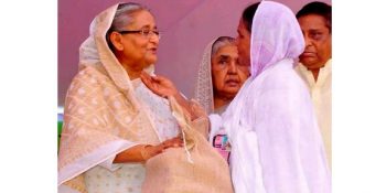 প্রধানমন্ত্রী এ সময় জনগণের কাছে দোয়া চেয়ে বলেন, ‘বাবা-মা, ভাই সব হারিয়ে,স্বজন হারাবার বেদনা নিয়েই আপনাদের পাশে এসে দাঁড়িয়েছি। আপনাদের মাঝেই আমি খুঁজে পেতে চাই আমার হারানো বাবা-মা-ভাইদের ¯স্নেহ।’
