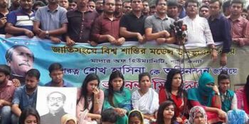 জাতিসংঘের সাধারণ সভায় রোহিঙ্গাদের পক্ষে ছয় দফা দাবি উপস্থাপন করায় প্রধানমন্ত্রী শেখ হাসিনাকে ধন্যবাদ জানিয়ে আনন্দ মিছিল করেছে ছাত্রলীগ। ছাত্রলীগের কেন্দ্রীয় সাধারণ সম্পাদক এস এম জাকির হোসাইনের নেতৃত্বে রবিবার সকালে ঢাকা বিশ্ববিদ্যালয় ক্যাম্পাসে এই আনন্দ মিছিল বের করা হয়।