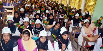 মুক্তিযুদ্ধের দীপ্ত শপথে ঐক্যবদ্ধ হয়ে দেশ গড়ার ও চেতনা সমুন্নত রাখার অঙ্গিকার নিয়ে ছাত্র-ছাত্রীদেরকে শপথ বাক্য পাঠ করান এবং সকলের হাতে হাতে বিজয় নিশান তুলে দেন প্রধান অতিথি মজিবুল হক রিপন।