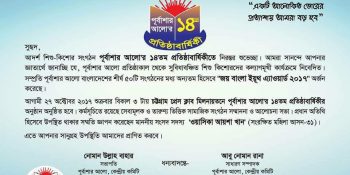 আদর্শ শিশু-কিশোর সংগঠন পূর্বাশার আলো’র ১৪তম প্রতিষ্ঠাবার্ষিকী উদ্যাপনকল্পে আগামীকাল ২৭ অক্টোবর শুক্রবার বিকাল ৩ টায় চট্টগ্রাম প্রেসক্লাব মিলনায়তনে সেবামূলক ও তারুণ্য ভিত্তিক সামাজিক সংগঠন সম্মাননা ও আলোচনা সভা অনুষ্ঠিত হবে। এতে প্রধান অতিথি হিসেবে উপস্থিত থাকবেন গণপ্রজাতন্ত্রী বাংলাদেশ সরকারের মাননীয় সংসদ সদস্য ওয়াসিকা আয়শা খান (সংরক্ষিত মহিলা আসন-৩১)। বিশেষ অতিথি থাকবেন বিভিন্ন পর্যায়ের বিশিষ্ট জনেরা। অনুষ্ঠানে কয়েকটি সামাজিক শিশু-কিশোর ও তারুণ্য ভিত্তিক সংগঠনকে সম্মাননা প্রদান করা হচ্ছে। অনুষ্ঠানে যথাসময়ে সংশ্লিষ্টদের উপস্থিত থাকার জন্য পূর্বাশার আলোর সভাপতি নোমান উল্লাহ বাহার ও সাধারণ সম্পাদক আবু নোমান রানা অনুরোধ জানিয়েছেন।