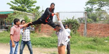 নজরুল ইসলাম তোফা > ‘আত্নরক্ষা’ নামকে সামনে নিয়েই চমৎকার গল্পের একটি স্বল্পদৈর্ঘ্য চলচ্চিত্রের শুটিং সম্প্রতিই শেষ হল। ‘আত্নরক্ষা’ ফিল্মের তরুণ চলচ্চিত্র নির্মাতা ইমদাদুল হক মিজান। এই ফিল্মের এ্যাকশন দৃশ্য পরিচালনায় চলচ্চিত্র এ্যাকশন নিয়ে যার তিনি হলেন পরিচালক কামাল মাহমুদI আর এ ফিল্মে অভিনয়ে আছেন, কারাতে ব্ল্যাকবেল্ট প্রাপ্ত জামাল দেওয়ান, বিপ্লব দেওয়ান, আর নবাগত খল অভিনেতা তাওলাদ শিকদার, শিশু শিল্পী তানজিনা সহ আরো অনেকে। তাছাড়া একটি বিশেষ চরিত্রে অভিনয় করেছেন চলচ্চিত্রের এ্যাকশন পরিচালক কামাল মাহমুদ নিজেই। অভিনয়ের পাশাপাশি তিনি প্রযোজনাও করেছেন। এ স্বল্পদৈর্ঘ্য চলচ্চিত্রের গল্প সম্পর্কে জানতে চাইলে সুুুুক্ষদ নির্মাতা ইমদাদুল হক মিজান বলেছেন- এ কাজের গল্পটি কুংফূ -কারাতে-মার্শাল আর্ট নিয়েই দাঁড় করাতে আপ্রাণ চেষ্টা করা হয়েছে। গল্প সম্পুর্ণ এ্যাকশনধর্মীই বলা যেতে পারে তবে গল্পে কিছুটা রোমান্সও রয়েছে। তিনি তার গল্প নিয়ে কিছু কথা একটু সংক্ষেপে জানালেন, তাহলো কোন ভাই যদি তার বোনকে রাস্তা ঘাটে ইভটিজিং থেকে বাঁচানোর জন্য কুংফূ এবং কারাতের কৌশল শিখিয়ে দেয়, সে ব্যাপারটি কেমন হতে পারে?