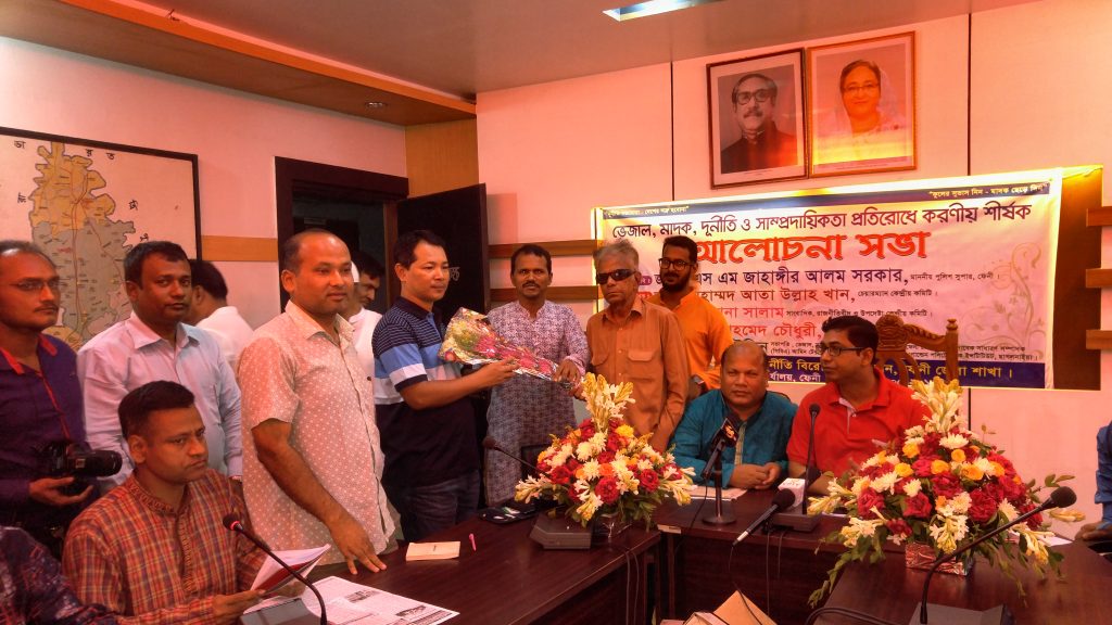 ফেনী প্রতিনিধি : ফেনীতে ভেজাল, মাদক, দুৃর্নীতি ও সাম্প্রদায়িকতা প্রতিরোধে করণীয় শীর্ষক অালোচনা সভা অনুৃষ্ঠিত হয়েছে ।