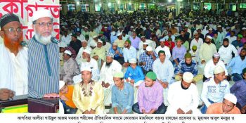 খতমে কোরআন মাহফিল শেষে বিশ্ব মুসলিম উম্মাহর শান্তি, দেশের অগ্রগতি ও উপস্থিত সকলের ইহকালীন কল্যাণ ও পরকালীন মুক্তি এবং দূর্যোগপূর্ণ পরিস্থিতি থেকে পরিত্রাণ কামনা করে মুনাজাত পরিচালনা করেন আওলাদে রাসূল মাননীয় মোর্শেদে আজম মাদ্দাজিল্লুল আলী ছাহেব।
