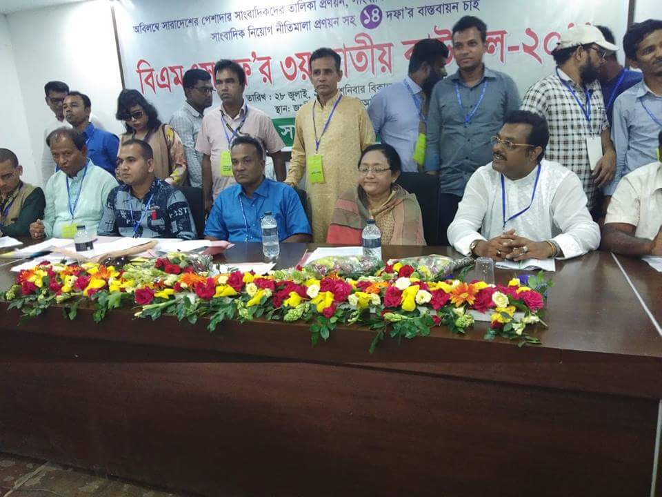 এ সময় নেতৃবৃন্দ সরকারকে অবিলম্বে সারাদেশের পেশাদার সাংবাদিকদের তালিকা প্রণয়ন, সাংবাদিক নিয়োগ নীতিমালা প্রণয়ন, সাংবাদিক নির্যাতন বন্ধে যুগোপযোগি আইন প্রণয়নসহ ১৪ দফা দাবি বাস্তবায়নের দাবি করা হয়। একই সাথে বিএমএসএফকে নিয়ে ষড়যন্ত্রকারীদের বিরুদ্ধে সংগঠনের নেতাকর্মী ও সাংবাদিকদের সজাগ থাকার আহবান জানানো হয়।