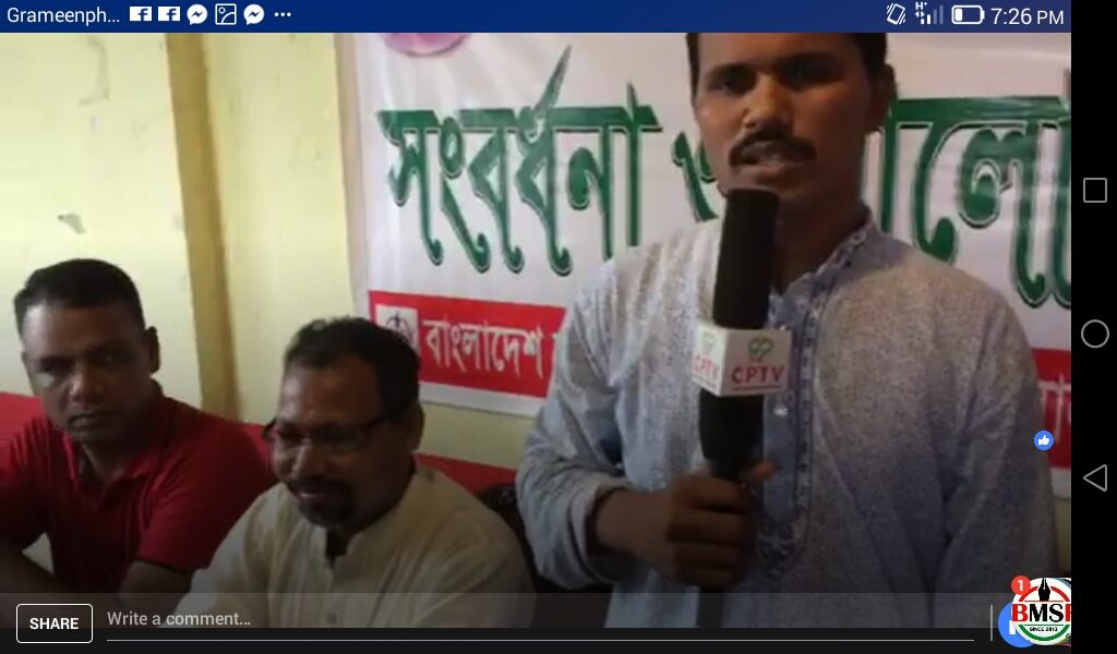 অনুষ্ঠানে বিএমএসএফ কেন্দ্রিয় কমিটিতে ফেনীর সভাপতি জসিম মাহমুদ স্থায়ী কমিটির সদস্য, জহিরুল ইসলাম জাহাঙ্গীর সহ-সম্পাদক, জাফর সেলিম, তমিজ উদ্দিন, কাজী নোমান, আবুল হাসনাত তুহিন নির্বাহি সদস্য এবং অলনাইন প্রেস ইউনিটির কেন্দ্রীয় কমিটিতে সৈয়দ মনির অাহমদ স্থায়ী কমিটির সদস্য, জহিরুল ইসলাম জাহাঙ্গীর ভাইস চেয়ারম্যান, নান্টু লাল দাস সাধারন সম্পাদক নির্বাচিত হওয়ায় সংবর্ধনা দেয়া হয়।