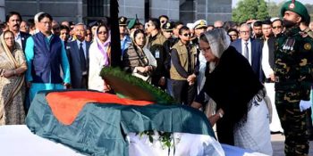 পরে দলীয় নেতা-কর্মীদের সঙ্গে আওয়ামী লীগের সভাপতি হিসেবে প্রধানমন্ত্রী এই অভিজ্ঞ পার্লামেন্টারিয়ানের কফিনে আবার পুস্পস্তবক অর্পণ করেন।