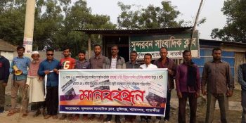 শনিবার বিকালে মুন্সিগঞ্জ বাসস্টান্ডে সুন্দরবন সাংবাদিক ক্লাব এ মানববন্ধন সমাবেশের আয়োজন করে। সমাবেশে বক্তব্য রাখেন বুড়িগোয়ালিনী ইউনিয়নের প্যানেল চেয়ারম্যান জি এম আব্দুর রউফ, লিডার্স এর ভারপ্রাপ্ত পরিচালক অসিত মন্ডল, সুন্দরবন সাংবাদিক ক্লাবের উপদেষ্টা মো: জাহাঙ্গীর আলম, রিলিপ ইন্টার ন্যাশনাল প্রতিনিধি দীপংকর বিশ্বাস, সামস্ এর প্রোগ্রাম অফিসার সঞ্জয় মাঝী, সাংস্কৃতিক কর্মী মো: জাহাঙ্গীর হোসেন, ত্রিদীপ সরদার, দীপংকর সরদার, মুন্সিগঞ্জ ইউপি সদস্য সিরাজুল ইসলাম, এছাড়াও জিএম ফারুক হোসেন, জাহাঙ্গীর আলম, আব্দুল্যা আল মামুন, দীপক মিস্ত্রী, আশিকুর রহমান, নজরুল ইসলাম প্রমুখ সাংবাদিক নেতৃবৃন্দ।