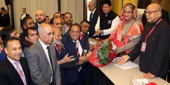 হোটেলে পৌঁছলে অল ইউরোপীয় আওয়ামী লীগ সভাপতি অনিল দাস গুপ্ত ও সাধারণ সম্পাদক এম. এ গণির নেতৃত্বে বিপুলসংখ্যক প্রবাসী বাংলাদেশী প্রধানমন্ত্রী শেখ হাসিনাকে অভিনন্দন জানান।