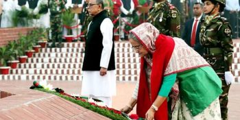 রাষ্ট্রপতি আব্দুল হামিদ প্রথমে স্মৃতিসৌধের বেদীতে ফুলেল শ্রদ্ধা নিবেদন করেন এবং এর পরপরই প্রধানমন্ত্রী শ্রদ্ধা জানান।