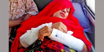 চমেক হাসপাতালে গিয়ে দেখা যায়, ২৬ নম্বর ওয়ার্ডে দুই হাতে আঘাতের যন্ত্রণায় কাতরাচ্ছেন স্কুল শিক্ষিকা মিসফা।