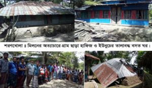 দিনমজুর ইউনুচের স্ত্রী হাসিনা বেগম (৪৫) জানায়, প্রকৃতির ডাকে সাড়া দিতে তিনি গত ১৬ মে ,রাত ৩টার দিকে ঘরের বাহিরে গেলে মিলন তাকে ধর্ষণের চেষ্টা করে। এ ঘটনায় শরণখোলা থানায় মামলা দিলে তার স্বামী ইউনুচকে মারপিট করে মামলা প্রত্যহারের জন্য আটকে রাখে। পরে মিলনেরা ৪/৫ ভাই মিলে তাদের হাঁস, মুরগী, কবুতর, গরু সহ বসত ঘরের মুল্যবান মালামাল লুটে নিয়ে যায়।