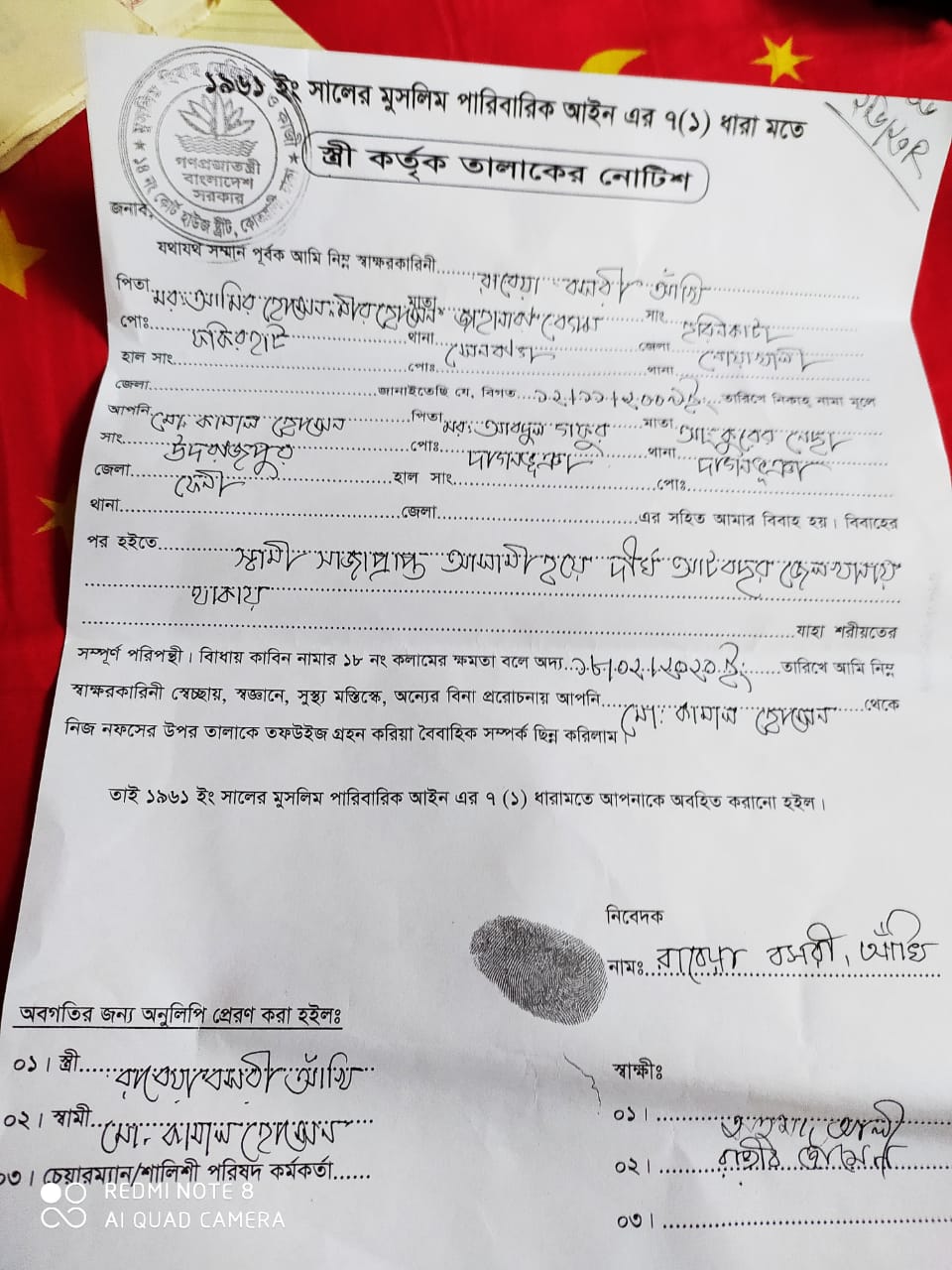 এ ব্যাপারে রাবেয়া বসরী আঁখি বলেন, বিয়ের এক বছর পর থেকে কামাল উদ্দিন জেলখানায় বন্দি। একটি অস্ত্র মামলায় সাজাপ্রাপ্ত হয়ে সে জেল হাজতে আছেন। আমাদের একটি ছেলে ছিল , সেও ৫বছর বয়ষে মারা গেছে। তাঁর জন্য আমি দীর্ঘ ৮বছর অপেক্ষা করেছি। সে এবং তার পরিবার সবসময় আমার বদনাম রটিয়েছে। নিরুপায় হয়ে চলতি বছর ফেব্রুয়ারী মাসে কামালকে ডিভোর্স দিযেছি। যা দাগনভূঞার পৌর মেয়র ও স্থানীয় কাউন্সিলর অবগত আছেন। এরপর সামাজিক রীতি অনুয়ায়ী প্রস্তাব পেয়ে গত ৩জুন আমি প্রবাসী ইমামকে বিয়ে করি । এতে দোষের কিছুই হয়নি।
