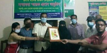 সর্বশেষে কৃষিবিদ নাছির উদ্দিন চৌধুরীর হাতে নিরাপদ ফসল ও ভার্মিকম্পোষ্ট উৎপাদ বৃদ্ধি এবং সম্প্রারন এ ব্যপক ভূমিকা রাখায় সন্মাননা স্বারক তুলেদে পাহাড়িয়া সোসাইটির ভাইস চেয়ারম্যান সালমা আনোয়ার, নির্বাহী পরিচালক শেখ মহিউদ্দিন ও পরিচালক প্রশিক্ষণ ও কর্মসংস্থান হ্যপি রানী ত্রিপুরা।
