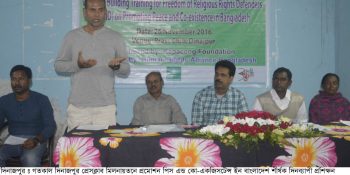 প্রমােশন পিস এন্ড কাে-একজিসটেন্স ইন বাংলাদেশ শীর্ষক দিনব্যাপী প্রশিক্ষণ কর্মশালা অনুষ্ঠিত । দিনাজপুর প্রেসক্লাব মিলানায়তনে শনিবর সকাল ১১ টায় কােপেং ফাউন্ডেশন কর্তৃক আয়ােজিত ’প্রমােশন পিস এন্ড কাে-একজিসটেন্স ইন বাংলাদেশ’ শীর্ষক দিনব্যপী প্রশিক্ষণ কর্মশালা অনুষ্ঠিত হয়েছে। দিন ব্যাপী এই প্রশিক্ষণ কর্মশালায় দিনাজপুরের বিভিন্ন অঞ্চলের আদিবাসী নেতৃবৃন্দরা অংশগ্রহন করেন উত্তরাঞ্চলের আদিবাসী ও ধর্মীয় সংখ্যালঘুদের সমস্যা ও সম্ভবনা বিষয়ে আলােচনা করেন।