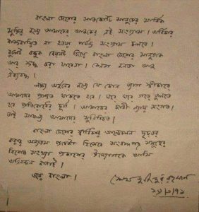 জাতীয় বঙ্গবন্ধুর নিজ হাতে লেখা একটি দুর্লভ চিঠি Banglar DarpanNovember 24, 2021 জাতির পিতা বঙ্গবন্ধু শেখ মুজিবুর রহমানের নিজ হাতে লেখা একটি দুর্লভ চিঠি পাওয়া গেছে । ১৯৭১ সালের ১৯ শে মার্চ এই চিঠি তিনি গনমাধ্যমে পাঠান। বাংলারদর্পণ Share this: Click to share on Facebook (Opens in new window) Facebook Click to share on X (Opens in new window) X Click to share on LinkedIn (Opens in new window) LinkedIn Click to email a link to a friend (Opens in new window) Email Click to print (Opens in new window) Print