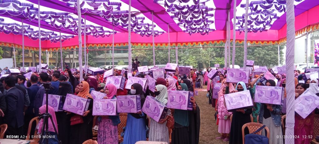 বুধবার দুপুরে ফেনী পিটিআই মাঠে জেলা প্রশাসন এবং তথ্য ও প্রযুক্তি অধিদপ্তরের আয়োজনে তথ্য ও যোগাযোগ প্রযুক্তি বিভাগের অধীনে ‘হার পাওয়ার’ প্রকল্পের আওতায় ল্যাপটপ বিতরণ অনুষ্ঠানে প্রধান অতিথির বক্তব্যে এসব কথা বলেন তিনি।
