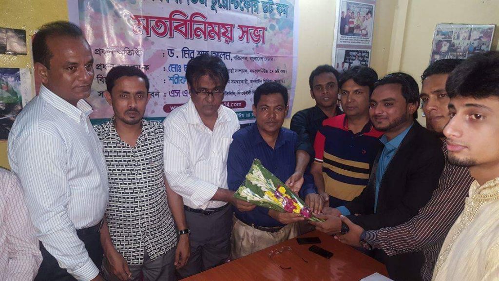 অনুষ্ঠানে শুরুতে প্রধান অতিথিকে ফুলের তোড়া দিয়ে শুভেচ্ছা জানান সমকালনিউজ টুয়েন্টিফোর ডট কম সিলেট অফিস এর নেতৃবৃন্দ।
