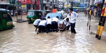 ঢাকার উত্তর-দক্ষিণে ভেদাভেদ নেই। মাত্র ৪৩ মিলিমিটার বৃষ্টিতেই পানির নিচে চলে গেছে ঢাকার দুই অংশের প্রধান প্রধান সড়ক, গলিপথসহ আশপাশের অনেক এলাকা। এটাই এখন বাস্তবতা। ফলে দুর্ভোগও যেন নিয়তি। এই দুর্ভোগ জলাবদ্ধতার, এই দুর্ভোগ অসহ্য যানজটেরও। সব মিলে মাঝারি বৃষ্টিতেই স্থবির এক রাজধানী।